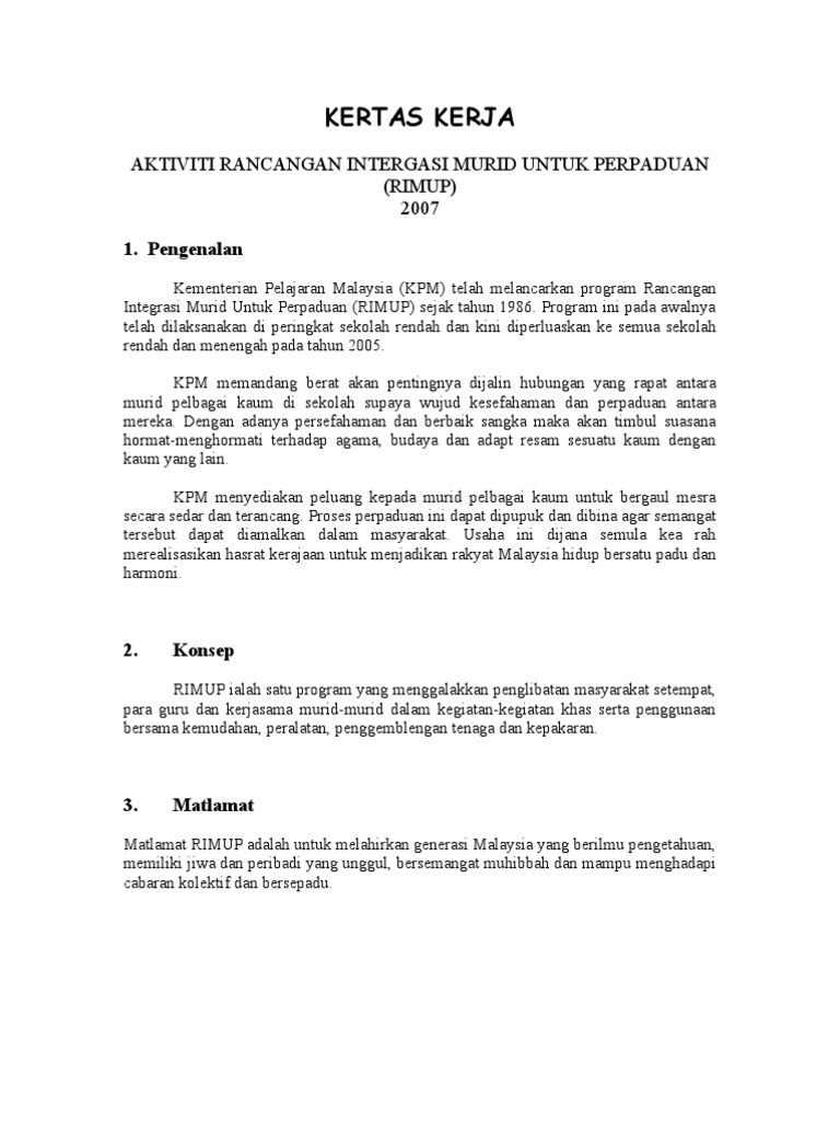 . Contoh Laporan Kertas kerja Projek. Kertas Kerja RIMUP Sambutan Hari Raya Peringkat Sekolah 2016. Menanamkan sifat pemaaf dan pemurah antara orang Islam 3.